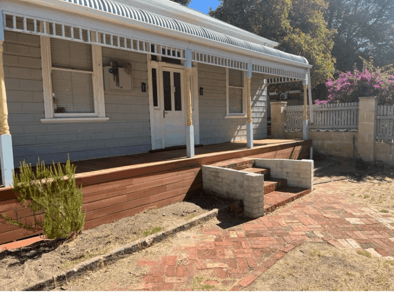For this character home in Subiaco, we installed new Jarrah timber decking to the front alfresco area, creating a warm and welcoming entrance that complements the home’s traditional architecture.